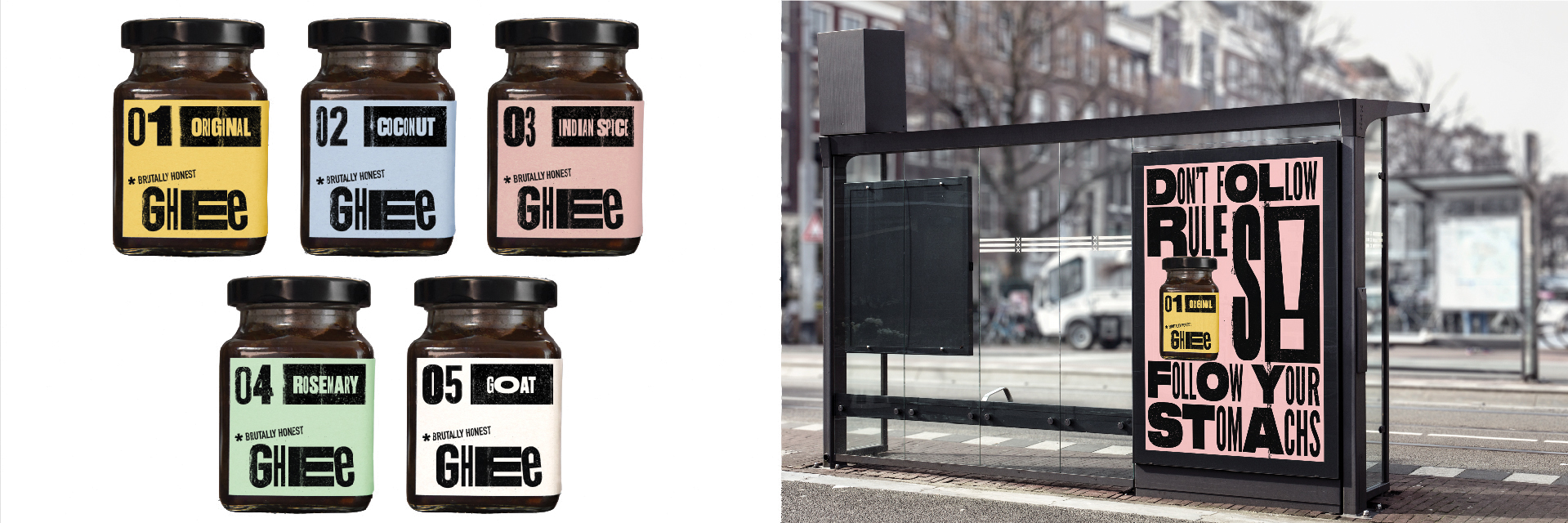 Ghee kan tot hogere temperaturen verhit worden dan boter en wordt onder andere gebruikt voor braden en frituren. Mattmo creëer een concept voor dit Ghee merk om activistische de markt in te gaan op een onderscheidende wijze.