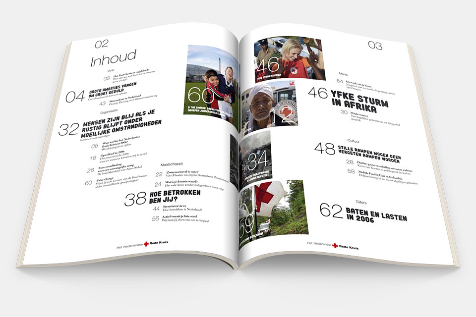 Mattmo creëerde een crossmediaal jaarverslag voor het Nederlandse Rode Kruis. De online versie concentreert zich op een inzichtelijke weergave van de cijfers van de organisatie. De gedrukte versie, in de vorm van een magazine gaat uitgebreid in op de activiteiten van het Nederlandse Rode Kruis. Het jaarverslag werd genomineerd voor de Transparant Prijs 2007 voor charitatieve instellingen. Het publiek is vooral bekend met de internationale activiteiten van het Rode Kruis, maar niet met de andere aspecten zoals stille rampen, lokale vrijwilligersondersteuning en regionale of lokale sociale projecten. Ons doel was het verhaal achter de cijfers te vertellen en de diversiteit van de Rode Kruis activiteiten op een aansprekende manier inzichtelijk te maken. Voor het medium drukwerk hebben we daarom gekozen voor een magazine vorm. Op een toegankelijke wijze wordt middels visuele communicatie getoond wat "zorg" betekent. Vanuit een lifestyle benadering met verschillende invalshoeken. De kruisverbanden zijn via een speciale interface in het magazine te vinden. De sterk visuele benadering geeft een direct inzicht. Reportages van prijswinnenden fotojournalisten trekken de lezer in het verhaal. Bekende Nederlanders tonen de internationale projecten en geven inzicht in de bestedingen van de donaties. Door de lokale en regionale activiteiten in beeld te brengen, wordt duidelijk hoe belangrijk de vrijwilligers zijn voor het Rode Kruis.